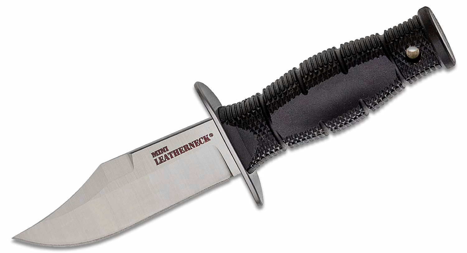 It is not the size of the dog in the fight that matters as much as the size of the fight in the dog! The Mini Leatherneck Series embodies this saying completely. Made from 8Cr13MoV steel and offered in three blade styles, each features a stainless steel guard with broad quillons to protect your fingers. The grip is made from Kray-Ex™ and is de-signed to be reminiscent of our larger Leatherneck models.These knives come with a tough, sturdy Secure-Ex™ sheath that will accommodate a bead lan-yard or a Cold Steel® C-Clip. Best of all they are economically priced.