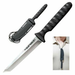 Our Spike series neck knives are slim, light and super-tough. Their razor sharp, zero ground blades, are complemented by heavily scalloped, textured handle scales that offer a comfortable and secure grip. The Spike’s ergonomic handles feature Integral quillons that provide a safe stop for index finger and thumb, while deeply textured and sculpted Griv-Ex provides excellent positive traction even when your hands are cold, wet and slippery. Available in four distinctive blade shapes (Bowie, Drop Point, Tokyo and Tanto point) they offer all the strength of a one-piece solid steel construction while still being light enough to carry all day without fatigue. Each Spike is supplied complete with a Secure-Ex sheath that provides excellent retention and safety.