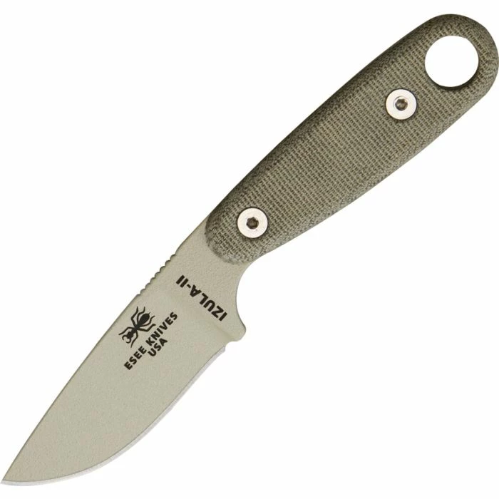 Designed after the most popular knife in the ESEE line, the Izula-II adds 1/2″ of handle length to the standard Izula and features full-size handle scales. The Izula-II is the perfect small knife capable of doing big work. All Izula sheath components will interchange with the Izula-II.