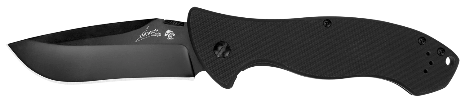 The CQC-9K is one of the biggest in the Kershaw-Emerson series. It offers maximum Emerson look-and-feel and maximum Kershaw build quality. The big drop-point blade is 3.6 inches of black-oxide-coated 8Cr14MoV stainless steel for good edge retention, hardness, and wear resistance. There’s a slight recurve for enhanced cutting of rounded materials, such as rope, hose, or zip ties. The G10-and-steel handle is contoured to fit the hand (yes, even a big hand) like a glove.