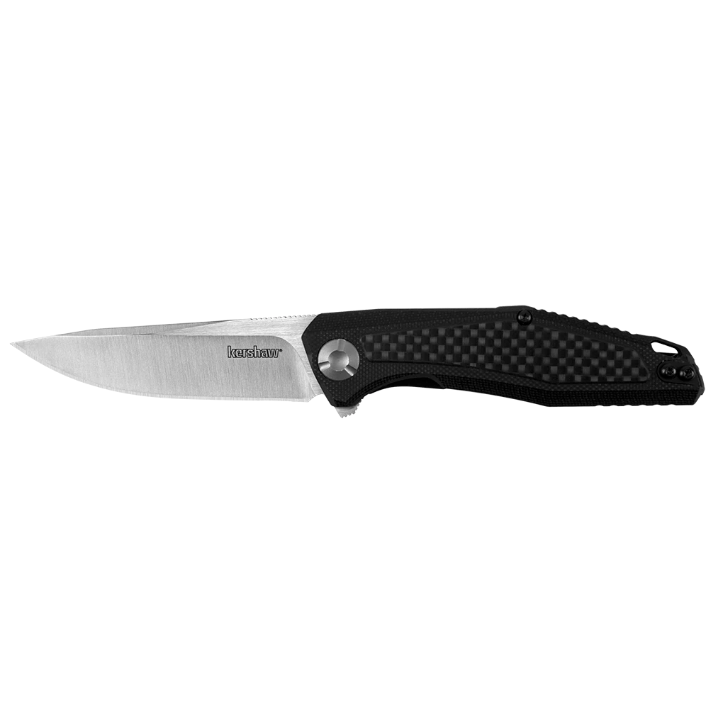 Designed by Dmitry Sinkevich, the Atmos features Sinkevich’s characteristic clean and practical design—but enhanced with extra detailing. In addition to the chamfered carbon-fiber, it also has a custom oversized pivot, a backspacer with wide lanyard attachment, and a reversible, deep-carry pocketclip. This manual knife opens quickly and easily with Kershaw’s KVT ball-bearing opening system. Extra detailing like this gives the Atmos a refined style that easily bridges the gap from workday to night on the town.