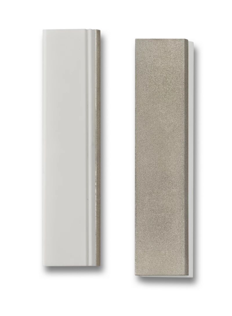 The Double Stuff 2 takes this time-tested concept and does it one better by combining an aggressive Cubic Boron Nitride (CBN) abrasive on one side with a fine ceramic stone on the other. This allows the quick, efficient sharpening of dull or chipped edges as well as the easy maintenance of well-sharpened edges in the field. To make the Double Stuff 2 even better, one long edge of each stone offers a radiused surface for sharpening serrations and the fine stone includes a longitudinal groove for fish hooks and pointed tools. Ideal for pocket, pack, or tackle box, the Double Stuff 2 comes complete with a handsome suede pouch.