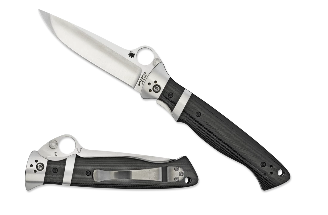 Butch Vallotton is one of the premier makers of high-end custom folders and automatic knives. He was also the first folder maker to use a blade’s thumb stud as a stop pin for the lock. Our Vallotton Sub-Hilt honors this innovation and is the only Spyderco to feature both a thumb stud and our Trademark Round Hole. Its premium CPM S30V blade combines hollow-ground primary bevels with a faceted flat-ground tip for a superior synthesis of cutting performance and point strength. The meticulously crafted handle combines brushed stainless bolsters and a sub-hilt with contoured, polished G-10 scales. It also houses the knife’s stout LinerLock mechanism and features a four-position clip that supports all possible carry configurations.
