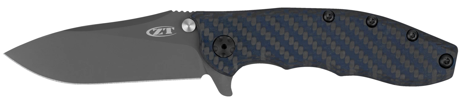 The cousin of the 0562 model, this ZT features the same Rick Hinderer special “slicer” grind, but on a premium stainless steel blade. A carbon fiber front scale reduces the weight so it rides in your pocket comfortably and adds a handsome touch. Like its cousin, this knife opens with a flipper and the ultra-smooth KVT ball-bearing opening system. To ensure secure use, it is built with a titanium frame lock with hardened steel lockbar insert and a lockbar stabilizer. The unique pocket clip is reversible and enables extra-deep carry.
